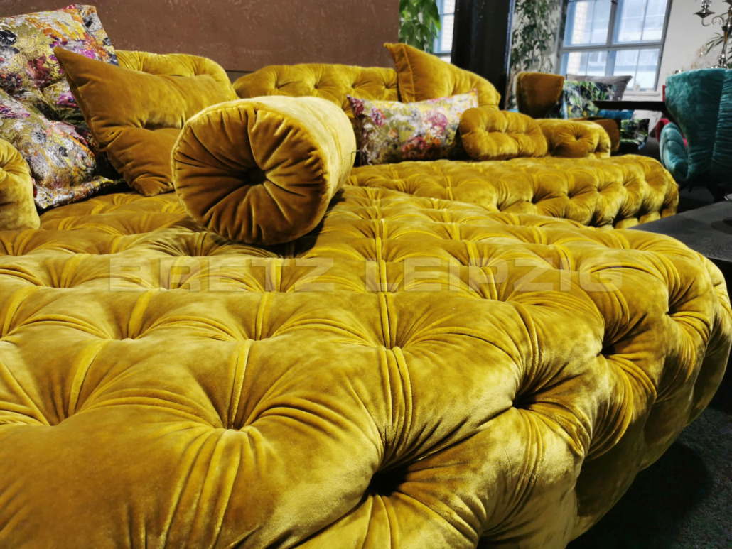 | COCOA ISLAND – Chesterfield reloaded ‒ Traditionshandwerk neu interpretiert. Insel der Träume mit sanften, wellengleichen Rundungen. Dichte, handwerklich meisterhafte Chesterfield-Heftung, bei der jeder Knopf einzeln von Hand in der Polsterung verankert wird. Kuschelweiche Polsterung, die sich himmlisch an die Körperform anschmiegt. Das wahrscheinlich komfortabelste Chesterfield-Polstermöbel der Welt!